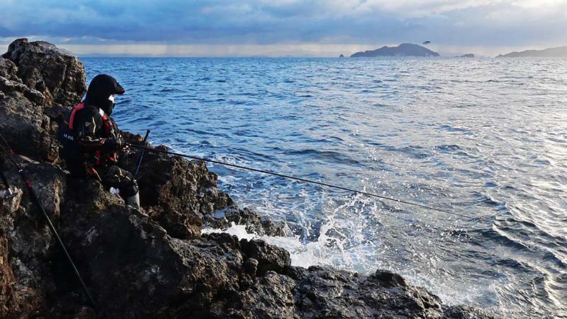 “黒石”組の二人は、それぞれ30㎝弱のクロをかなりキープしていました。今回は風と寒さに負けた例会となりましたが、冬の釣りとしては序の口かな?