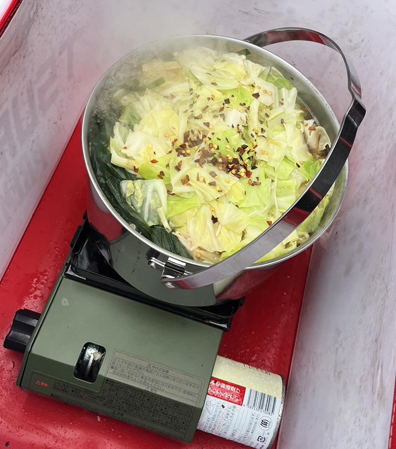 新しく新調したコンロと鍋セットは2回目の屋外使用。