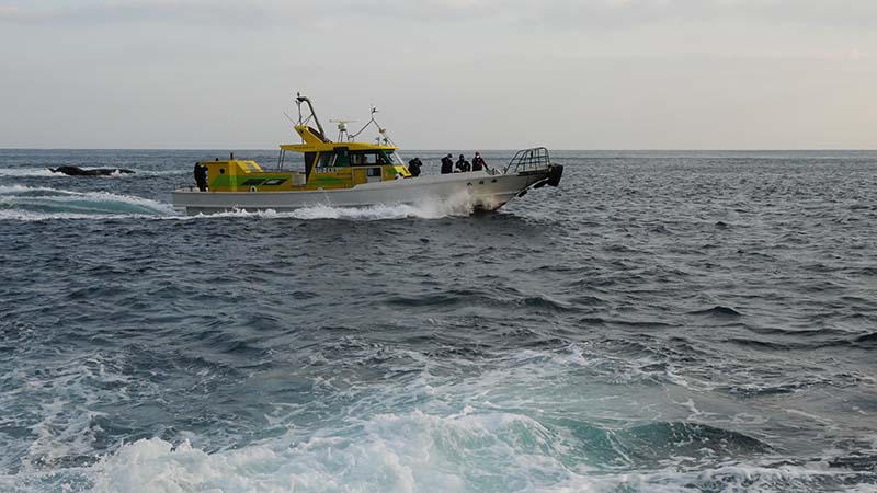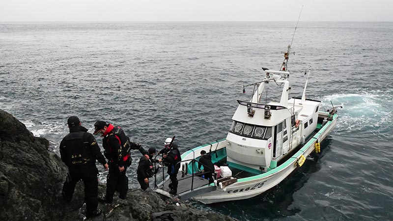 当日は9日から10日にかけて、日本の南海上を通過した低気圧と前線の置き土産のウネリが残っており、11日の米水津は各船20名を上限に磯へ渡す段取り。