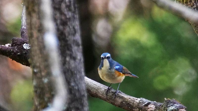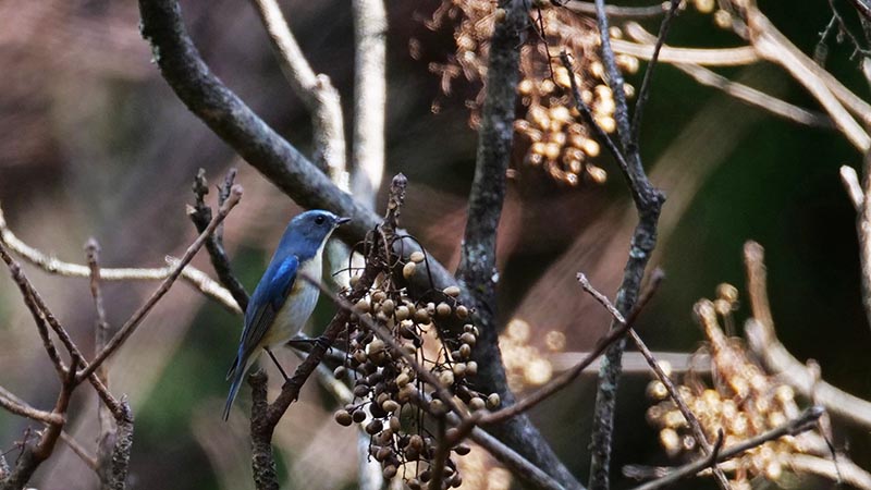 坊主山の頂上では、ルリビタキの♀が2羽で囀りながら縄張りを主張中。