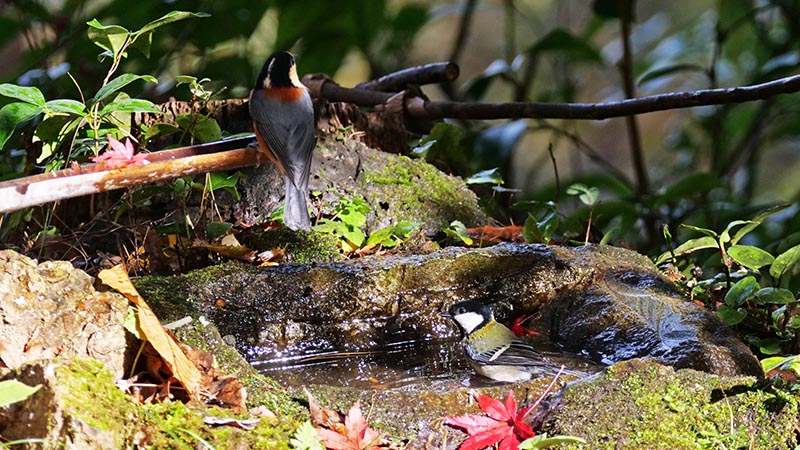 警戒心が強いので、脅さない様に撮影してたら♀も水を飲みに来た。