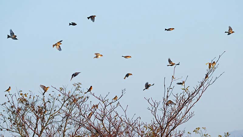 現在私たちの庭に来ている鳥は、シジュウカラ・ゴジュウカラ・ヤマガラ・ヒガラ・エナガ・メジロ・ウグイス・カワラヒワ・ヒヨドリ・リュウキュウサンショウクイ・コゲラ・アオゲラ・コジュケイ・アカヤマドリ・トラツグミ・ハシブトガラスなどの留鳥と、ハイタカ・ジョウビタキ・ルリビタキ・シロハラなどの冬鳥達・特定外来種のソウシチョウ・ガビチョウも・・。