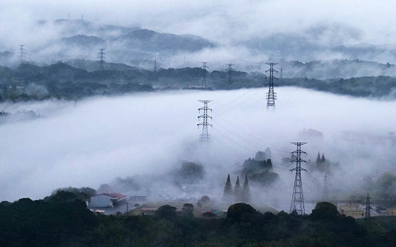 坊主山は私たち廻栖野集落での共有林。現在は野津原TV中継局の塔が数本立っており、春の桜と秋の紅葉が綺麗な県民の森の一部にもなっている。