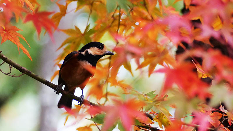紅葉のヤマガラ