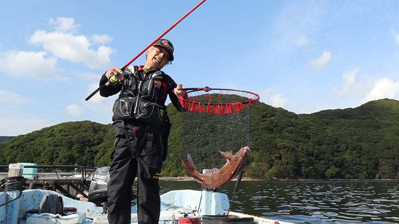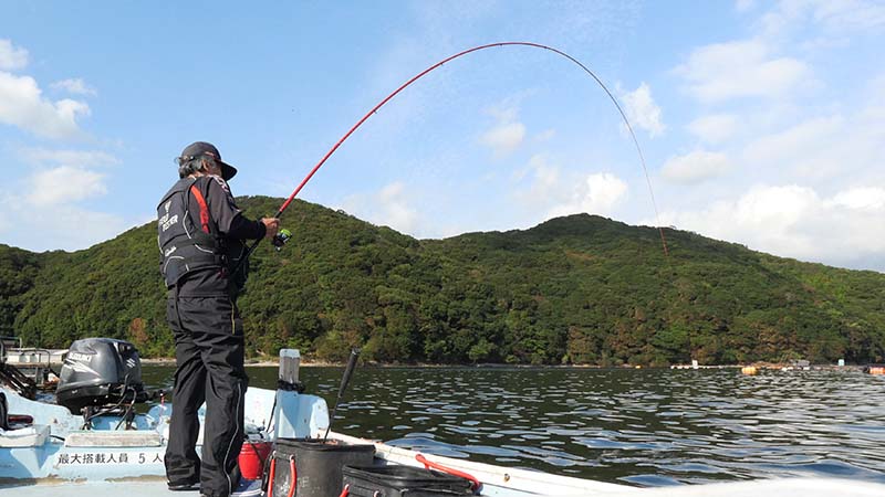 上田さんの竿曲げは30㎝弱のクロだった