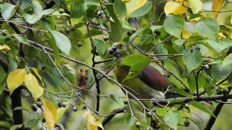 今日のアオバト♂(留鳥)ムクノキの実を食べる