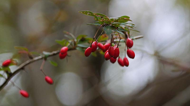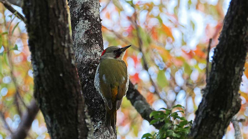 アオゲラ♀(留鳥)ハゼノキが赤く染まり始めています