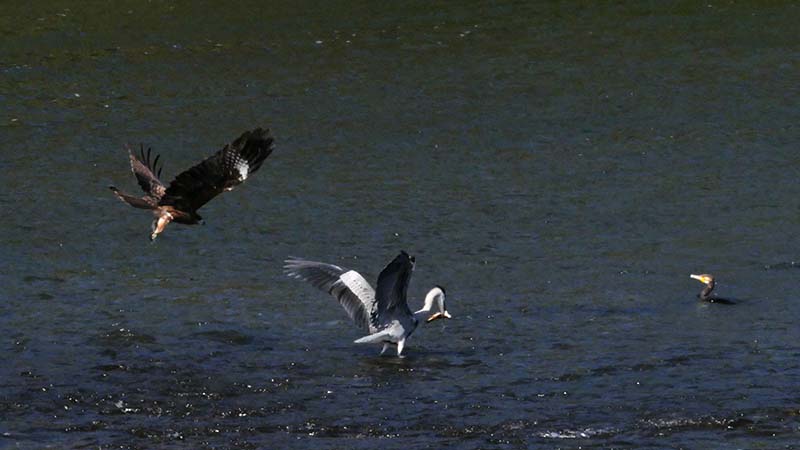 ココにも落ち鮎狙いの人・サギ類・カワウ・トビ・ミサゴが居ました。