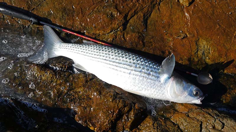 狙い通りに釣れた2㎏級のボラ