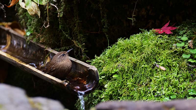 水を汲む竹樋にも・・・通過個体と判断しています。