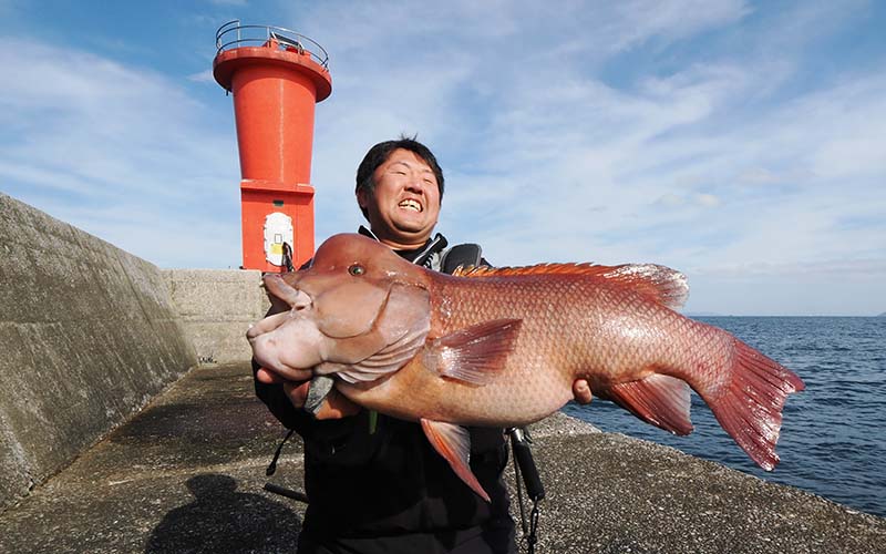 彼と同期は畦地君・宮内君・岩室君など、何度かカンダイ釣りに来ており、今回は日高君が彼女と共にカンダイを狙って沖一文字を攻めました。