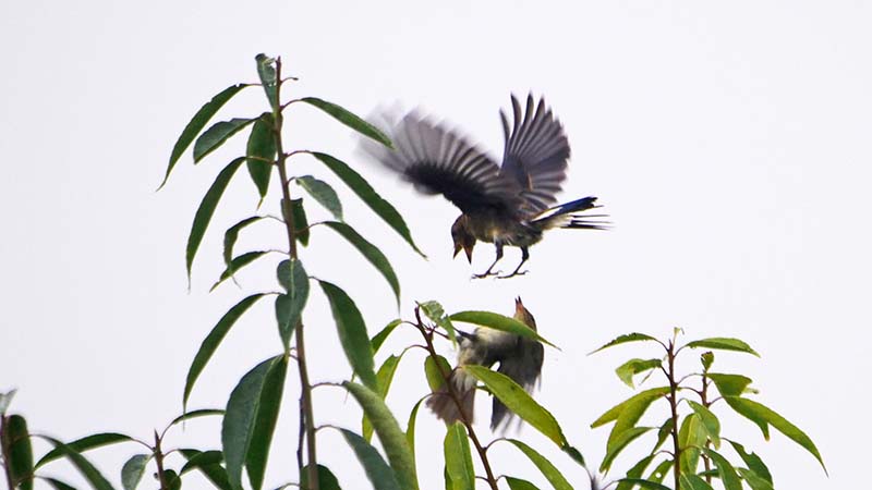 今朝はオオルリ♀と♂の幼鳥がバトルを展開激写!