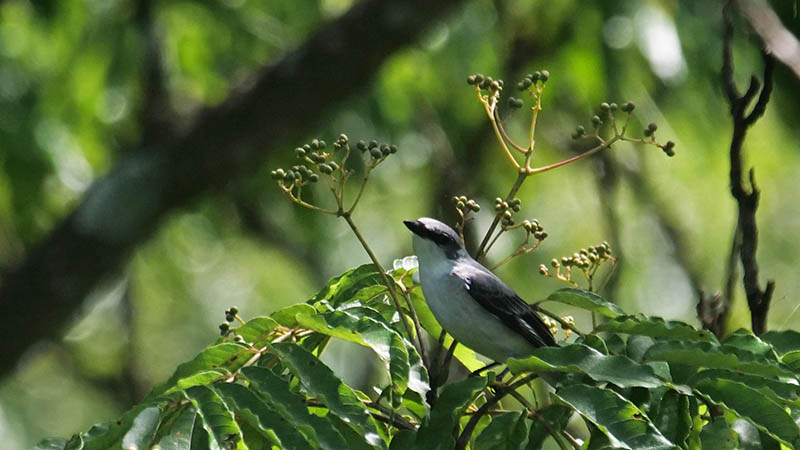 サンショウクイとの明らかな違いは、喉~胸~お腹にかけて、サンショウクイは白いけど、リュウキュウサンショウクイは灰色が混じっている。