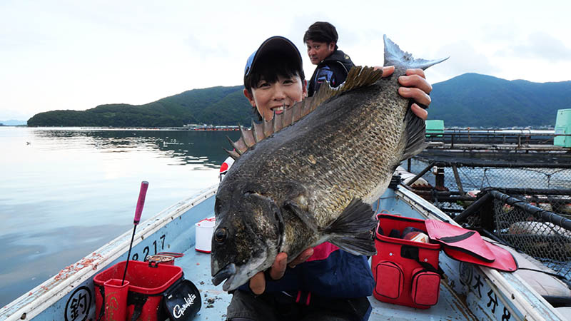 帰途、湾内の生簀で限定3投だけすると53.5㎝チヌ