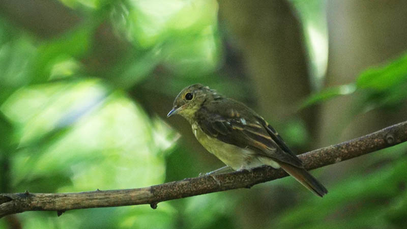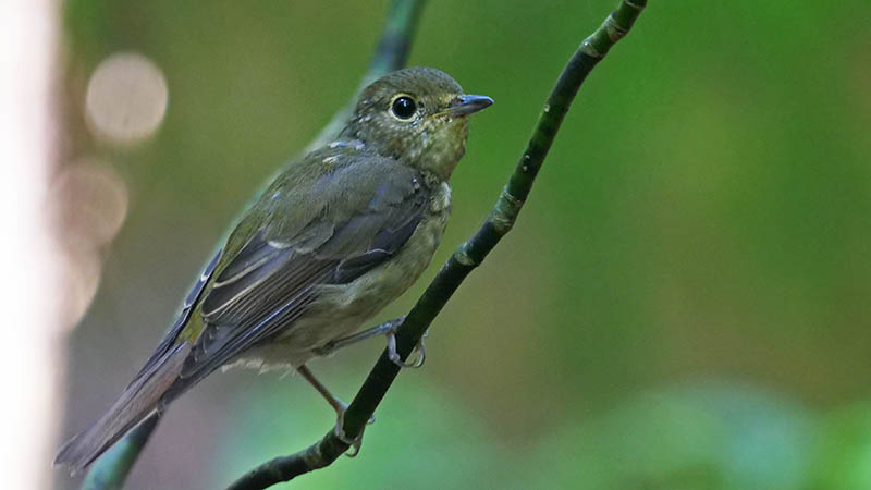 キビタキの♀と♂の幼鳥・若(第一回冬羽)は特に識別が難しい。