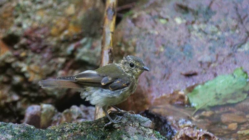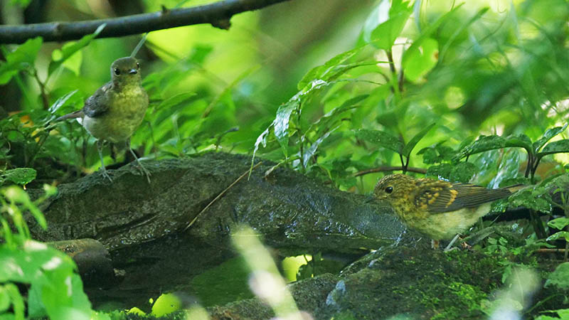 水場のキビタキは、♂の幼鳥が良く出てくるけど、♀の成鳥と共に来る幼鳥も居た。多分少し上の方で繁殖したと思われるけど、この♀も綺麗だった。