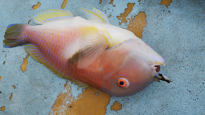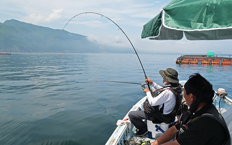竿の曲がりから、船上がオオモンハタで沸き上がったけど・・