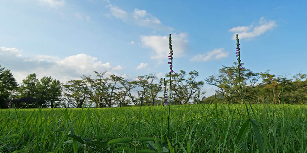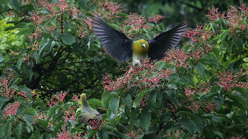 鳥や花を求めて活動する唯一の県外、阿蘇外輪山の産山村周辺は涼しい。