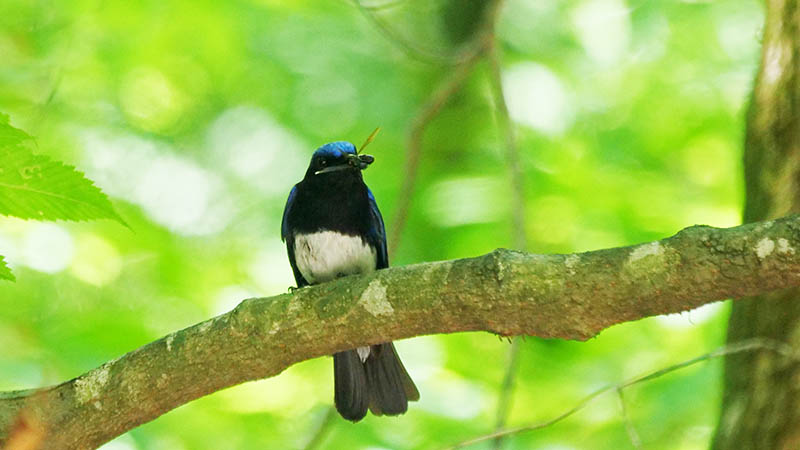 安友庭園のオオルリ、他に第2回夏羽と思われるサンコウチョウの♂