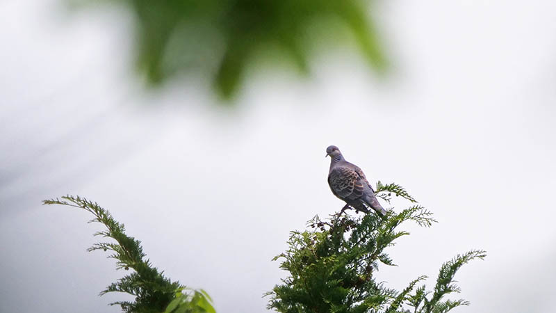 昨年セグロカッコウのソングポイントだった桧にキジバト
