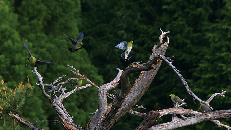 留鳥:アオバト・ヤマガラ・ハシブトガラス・メジロ・キジバト・カケス