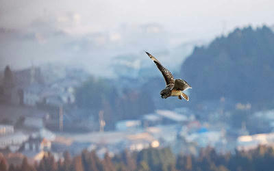 地上しか動けなかったネズミは、コミミズクの一部となって大空を舞う。