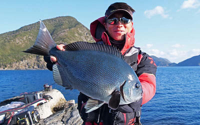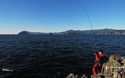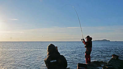 年間を通じてコッパオナガやグレが多いけど、冬場は30㎝級のクロやオナガが釣れて、1月に入ると40~50㎝のマダイや30~40㎝のイシダイも釣れる。