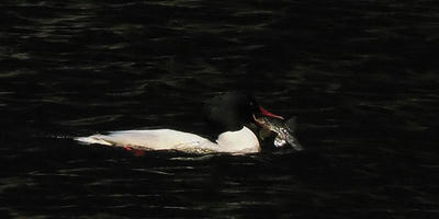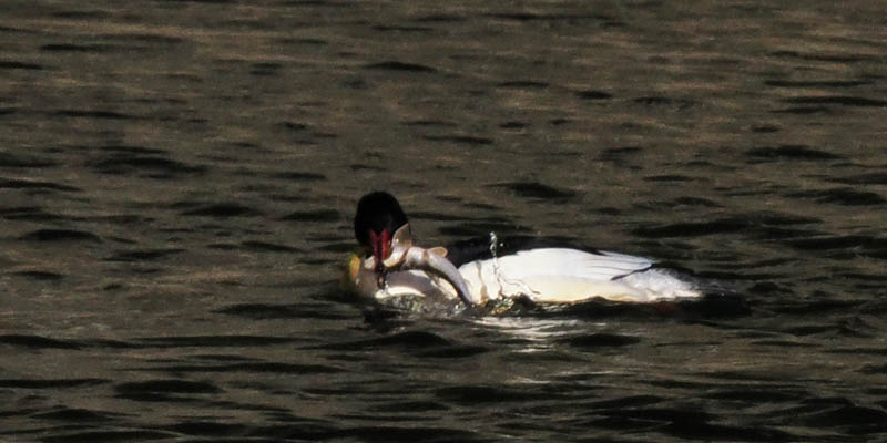 アイサ類は魚を食べますが、鵜の様に口を上に向ける事は無い。