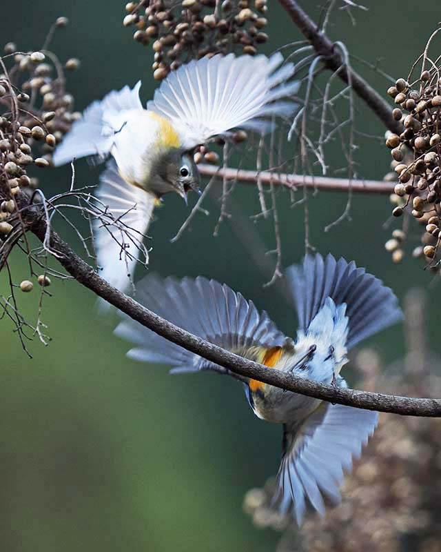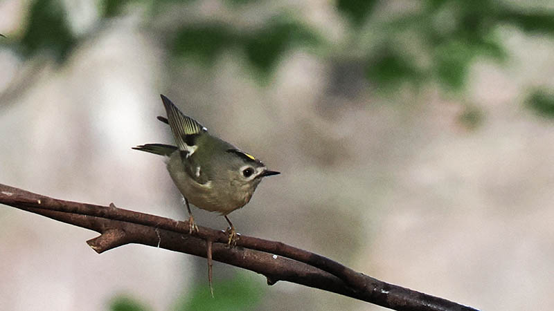 キクイタダキの体長は9~10㎝で、体重は約5gと重さはメジロの半分。