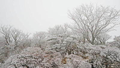 未明から大分市を出て竹田市では雪が始まり、阿蘇市へと入った。