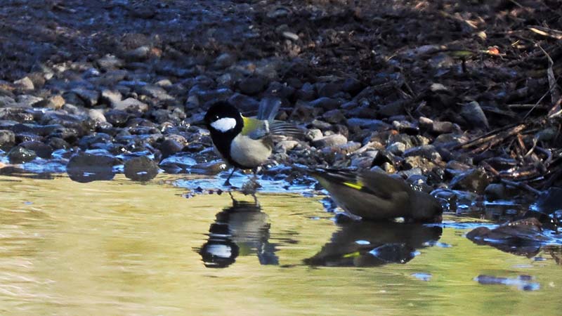 MAXで4羽ほど確認したけど、現在は多分3羽が水場に来ています。
