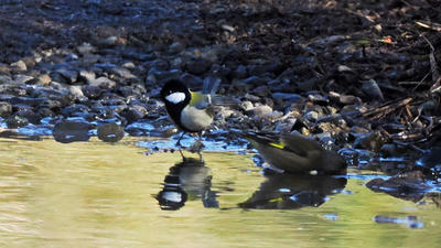 メジロの様に仲良く水浴びが出来ない様です