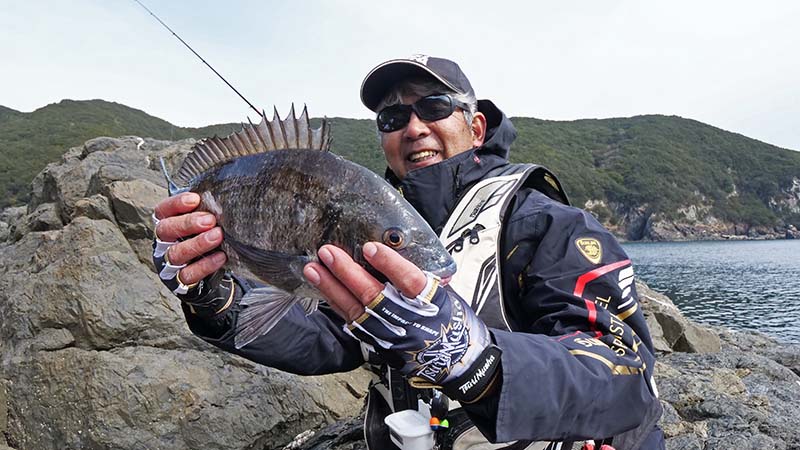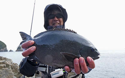 貧果の私に比べ、ジョニーはクロ3匹・チヌ1匹、ブダイやベラは数知れず。磯際から中間距離迄丁寧に探って行き、頻繁に竿を曲げていました。D級磯?で規定の3匹を検量して7位入賞を果たしたのは流石でした。