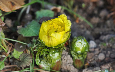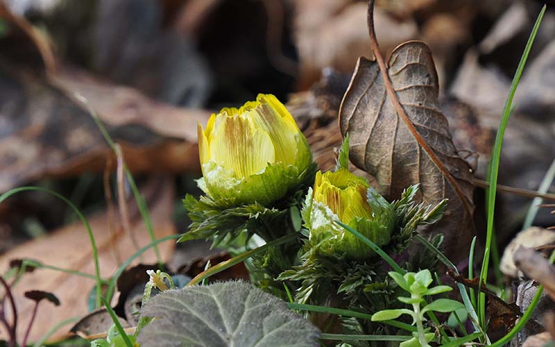 少し前の25日に覗いたフクジュソウは、一つの蕾を見つけただけでした。