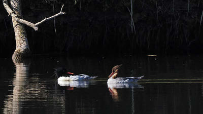 コウライアイサ♂、エンジェルポーズ