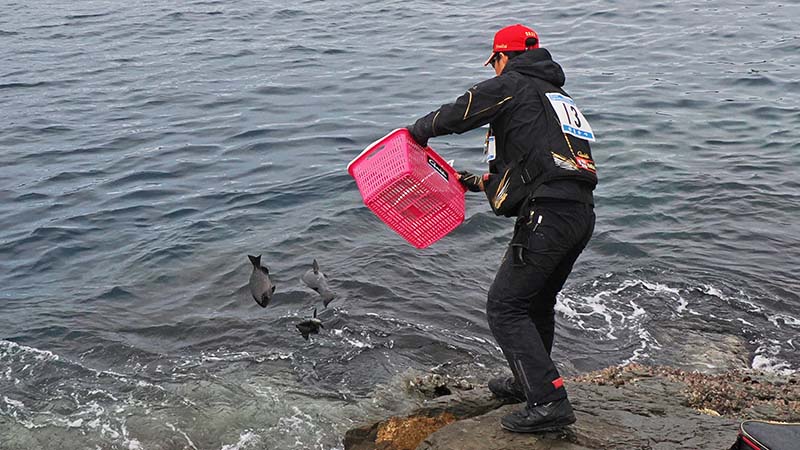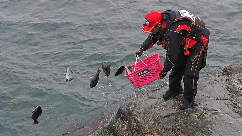 選手の皆さんは、南からのウネリと北西風を避ける釣り場が限定している中、スタッフや船長の判断で23日の予選リーグを戦い、12試合中釣果無しの試合は2試合のみの好成績でした。
