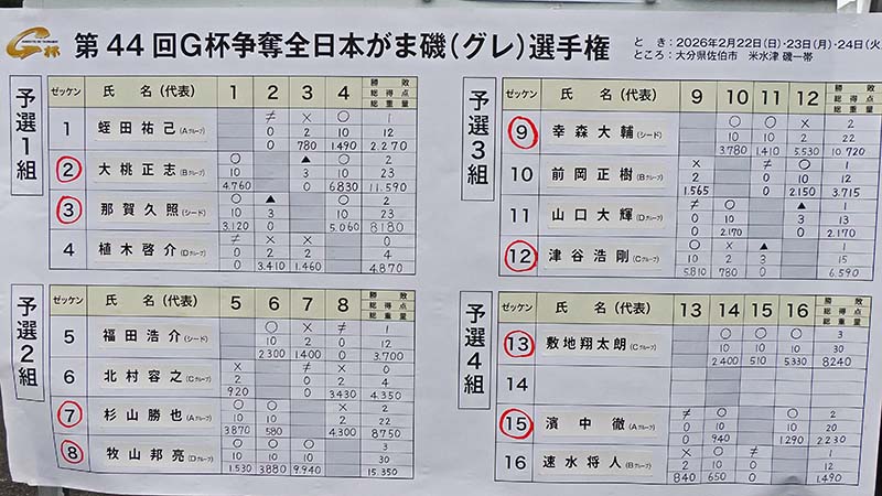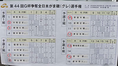今年からのG杯は2回目の大きな変貌での闘いとなりました。地区予選~セミファイナルを経て16名が全国で戦うシステムです。予選リーグは4人4組で3試合を行い、4組の内の1位と2位が翌日の決勝トーナメントに進みます。