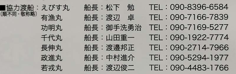 以前から7隻の瀬渡し船で営業しており、50年以上前からある程度の融通が利く渡船組合でしたが、若手の二代目になってからは更にまとまった。