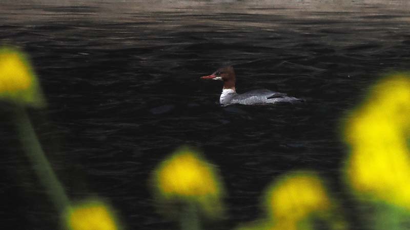 コウライアイサは既に去っていますが、カワアイサは今朝も7羽確認。