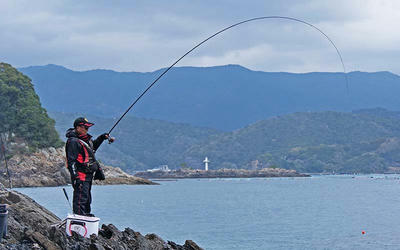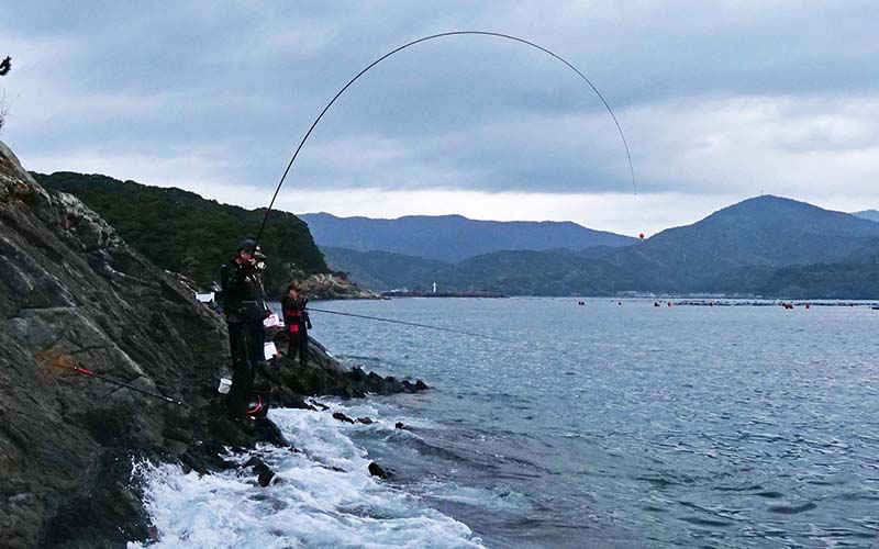 0号の竿でクロ狙いだから綺麗な曲がり