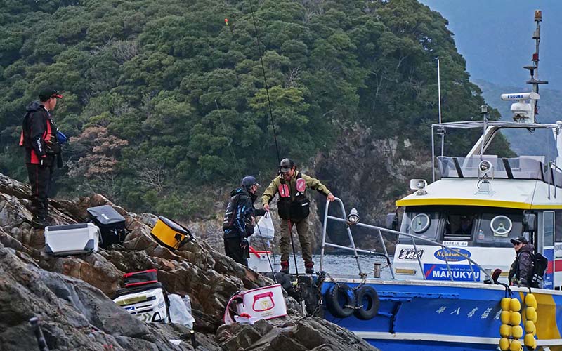 今回の同行者はエトやんとタカさんで、ウネリの着いた沖磯には行かなくて島野浦の湾内方向で竿を振りました。