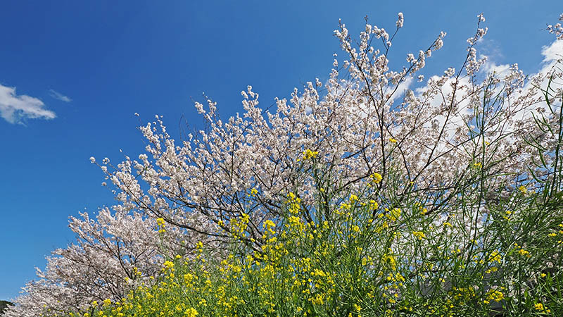 満開に近いし、少し早い所は花弁が風に舞っていた。