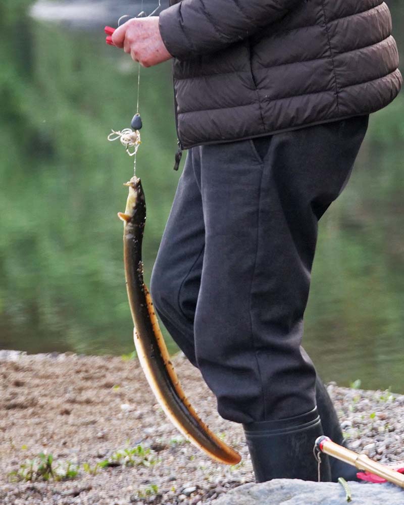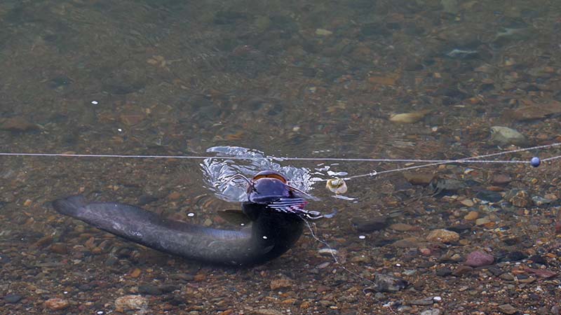7本の仕掛けに、ナマズが3匹とウナギが2匹ほど掛かっていた。