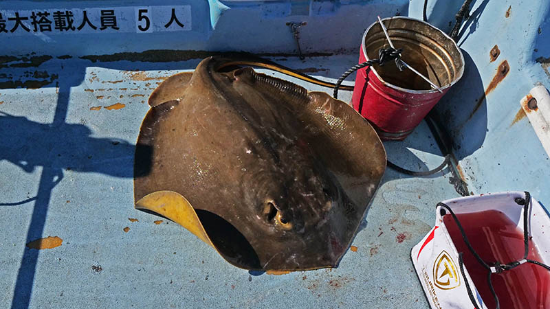 その仕掛けに来たのが、これまた残念無念のアカエイでした。