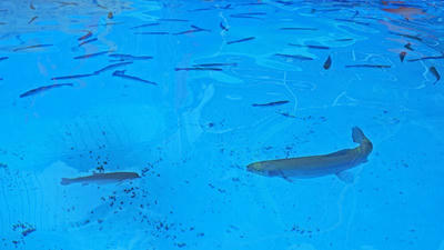 別府ケーブルラクテンチのプールを借りてマス釣り体験です。