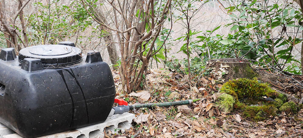 以前にも作っていましたが、イノシシがタンクなどを斜面に落としてアウト。