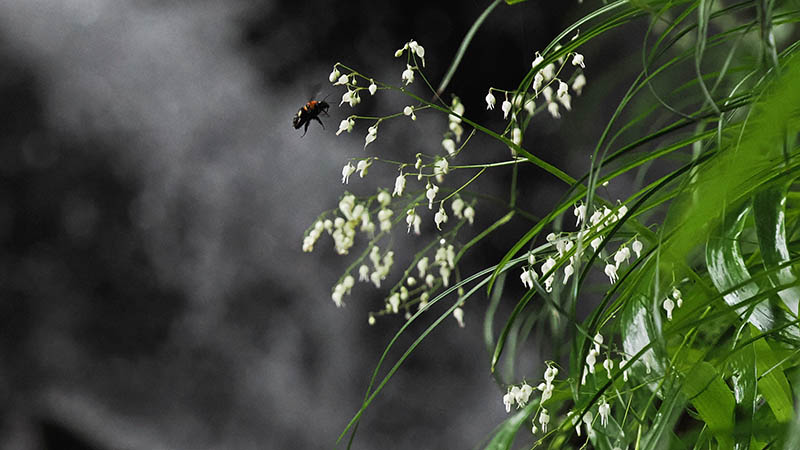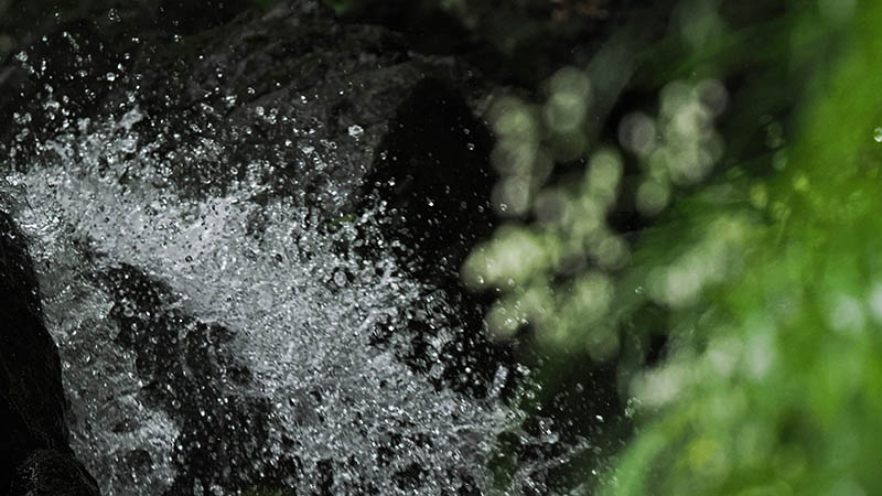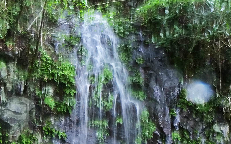 滝の前のケイビランにピントを合わせた