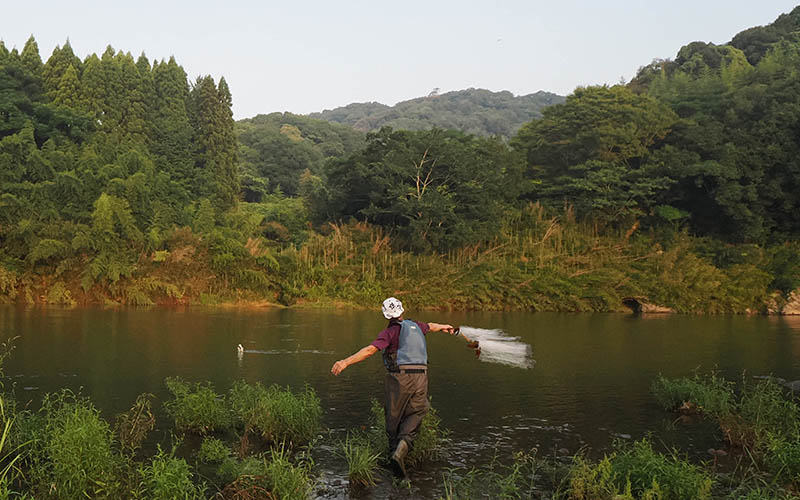そんな小鷹網漁を大分の大野川で実際に見て、撮影をお願いし数投の小鷹網漁を写真に収める事が出来たのです。