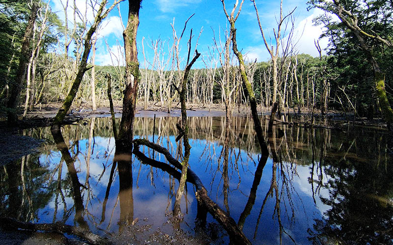 この場所は湿っているだけなのに