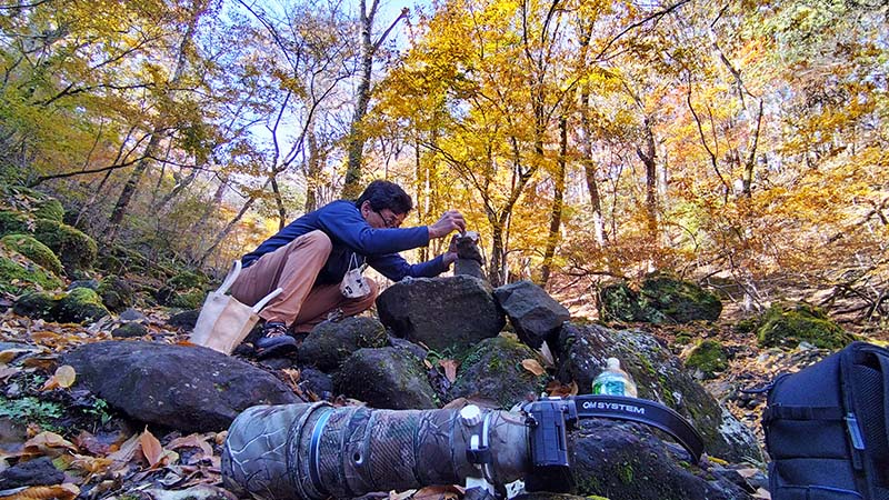 黄葉の中でやり遂げた一コマ